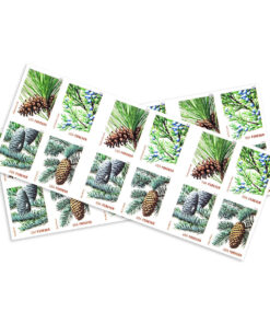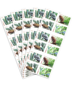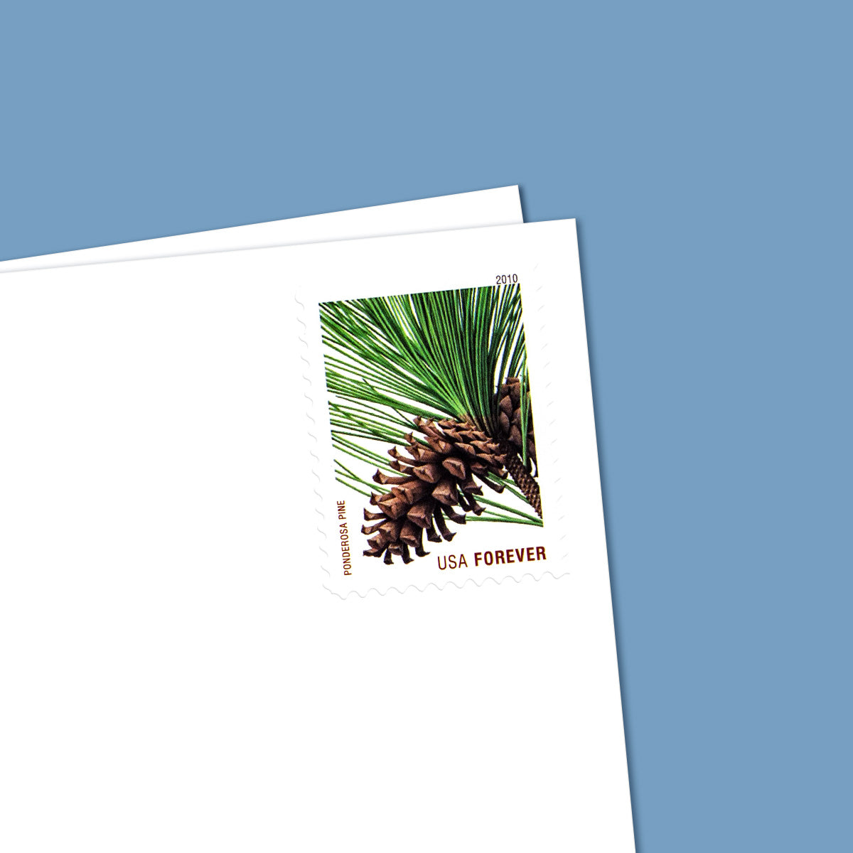 The U.S. Postal Service issued its first commemorative ???Forever???? stamp in 2010 with a Holiday Evergreens set of four. ?Pine cones and berries are shown from four different conifer (evergreen) trees ???C ponderosa pine. eastern red cedar. blue spruce. and balsam fir. ?Pine trees are frequently used for decoration in the holiday season months. a welcome splash of living greens during the cold. dreary months.