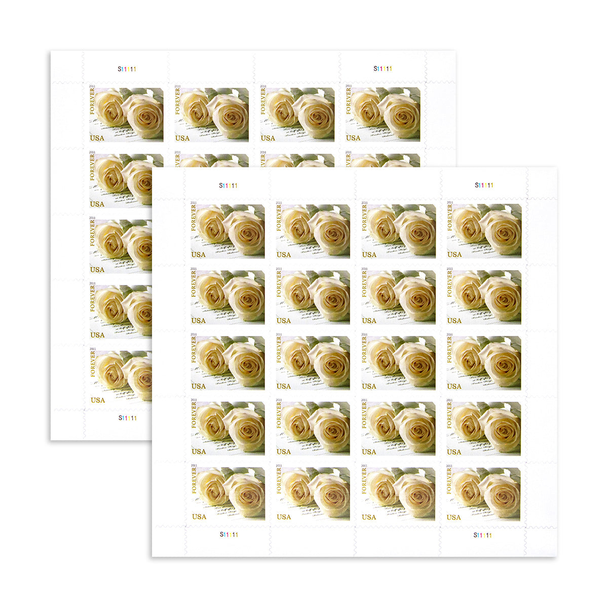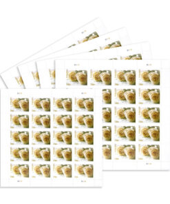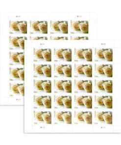 The Wedding Roses stamp. created by designer Ethel Kessler from Bethesda. Maryland. showcases a captivating photograph taken by Renee Comet of Washington. DC. The image beautifully captures two white roses delicately placed on a piece of wedding correspondence. with a subtle white ribbon appearing in the background. This elegant stamp adds a touch of grace and sentiment to wedding invitations and RSVP envelopes. symbolizing the beauty and significance of the occasion.