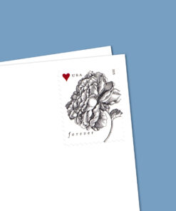 The rose was chosen for the 2015 Weddings Forever stamp because it is a universal symbol of love. This stamp was issued for use on wedding RSVP cards and thank you notes. A two-ounce rate Vintage Tulip stamp was released at the same time for use on wedding invitations and greeting cards that require extra postage.