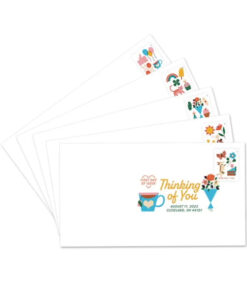 The pane of 20 stamps features five unique designs filled with a variety of whimsical images. including flowers. balloons. cute animals. sweet treats and symbols of good luck. Capturing the excitement and delight of receiving a card in the mail meant just for you. each digital illustration uses a cohesive color palette to bring together the disparate icons in the designs. Words of encouragement and thoughtful affirmations surround the stamps on the pane in the same tones. Each greeting is die-cut and self-adhesive.