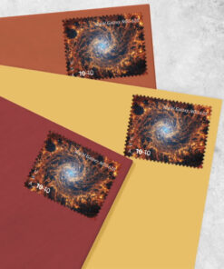 Art director Greg Breeding designed the stamp. using an image provided by NASA (National Aeronautics and Space Administration). ESA (European Space Agency). CSA (Canadian Space Agency). STScI (Space Telescope Science Institute). Janice Lee (STScI). Thomas Williams (Oxford). and the PHANGS (Physics at High Angular resolution in Nearby GalaxieS) team.